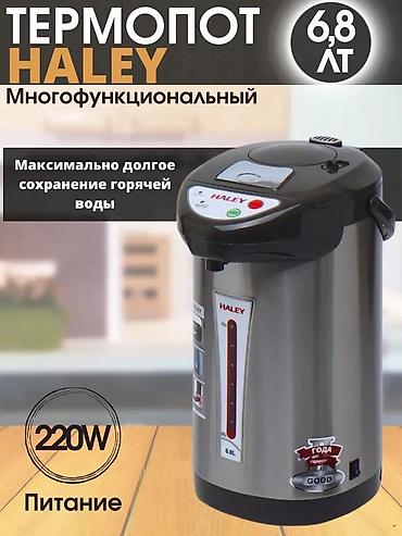 (чайник-термос НА580 6,8л 750 Вт) - уникальность термопота заключается в том, что он способен с легкостью вскипятить воду как чайник и сохранить ее горячей в течении долгого времени, как термос. Термопот HALEY выполнен из инновационных материалов с высокими термоизоляционными свойствами, благодаря чему происходит экономичный расход электроэнергии, а большой объём обеспечит горячей водой даже самую большую компанию. З способа подачи воды при нажатии чашкой на клапан, с помощью насоса, с помощью электропомпы. Функция повторного кипячения, колба из нержавеющей стали, ручка для переноски Тип нагревательного элемента: закрытая спираль