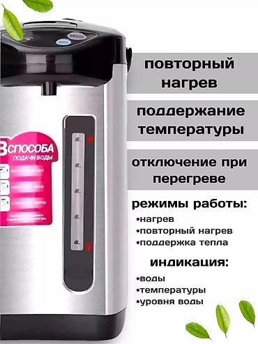 Идеальный помощник на кухне - Термопот! С этим электрическим устройством твои проблемы с нагреванием воды на чай или кофе теперь решены. Термопот объемом 5 литров позволит тебе всегда иметь горячую воду под рукой. С Термопотом так легко позаботиться о своих потребностях в горячем напитке. Ты можешь быть уверен, что каждый глоток будет настоящим удовольствием. Приобрети Термопот сейчас и позволь себе наслаждаться чашечкой горячего кофе или чая в любое время дня! 3 способа подачи воды: ручной насос, электронасос, автоматическая подача Блокировка панели управления. Автоматическое отключение при закипании, отключение при недостаточном количестве воды. Шкала уровня воды - индикаторы режимов работы. Вскипятить воду и устроить семейное чаепитие не составит никакого труда, ведь полученного кипятка хватит на всех. Термопот - это универсальный прибор для нагрева воды до нужной температуры и удержания ее на протяжении длительного времени. Благодаря своей функциональности и безопасности термопот удобен для больших семей, пожилых граждан, а также молодых родителей, которым постоянно требуется кипяченая вода нужной температуры. Чайник-термос имеет оптимальный объем. Колба изготовлена из нержавеющей стали обеспечивает долгое сохранение высокой температуры воды. Прибор с оптимальным защитным режимом работы станет также декоративным и практичным предметом кухни. Подходит для использования в туристических домиках с наличием энергосети. Такая нужная посуда с индикатором с качественным выключателем работает от домашней розетки. Удобен в использовании. Благодаря своей функциональности и безопасности термопот удобен для больших семей, пожилых граждан, а также молодых родителей, которым постоянно требуется кипяченая вода нужной температуры.