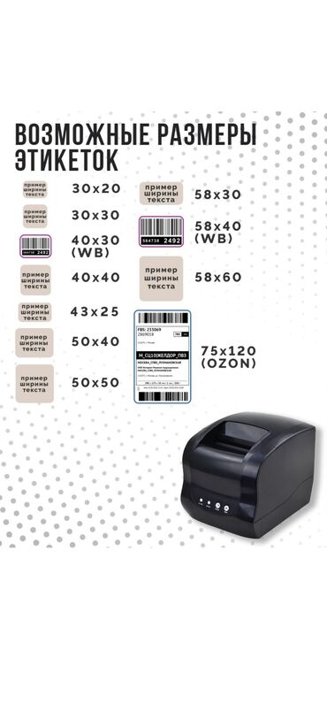 Термопринтер для этикеток Xprinter 365b USB. Подходит для печати этикеток Вайлдбериз, Озон. А также вы сможете самостоятельно печатать этикетки для маркировки товаровв комплекте программа есть. Не ...