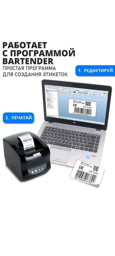 Термотрансферный принтер для этикеток, баркодов, риббон, печати на