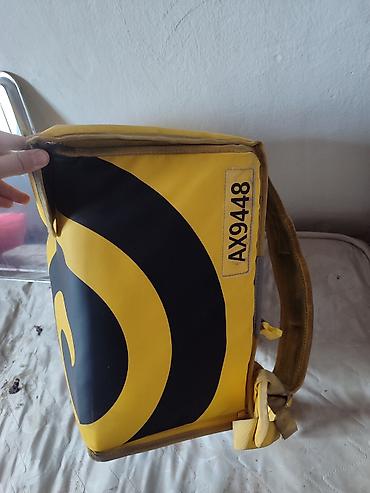 Термо-рюкзак курьера Яндекс Еда - Цвет: фирменный жёлтый с чёрными вставками и логотипами - Формат: большой изотермический бокс-рюкзак - Номер на бирках: AX9138 - Назначение: доставка еды и продук...