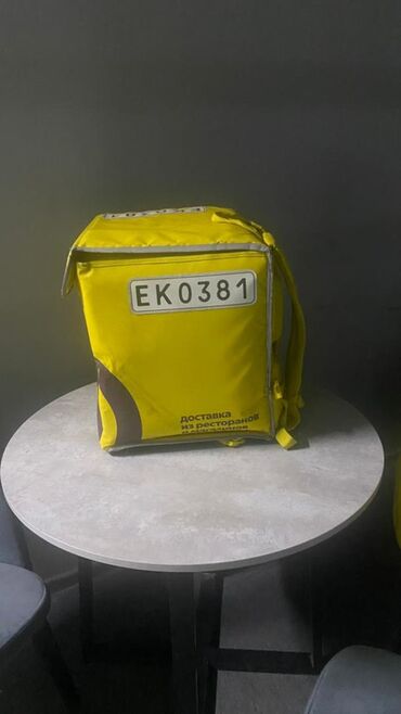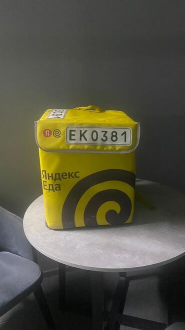Терморюкзак курьера Яндекс Еда - Фирменный изотермический рюкзак жёлтого цвета с логотипом «Яндекс Еда». - Жёсткая форма, держит объём; крышка на липучках/молнии с номерной вставкой «СМ7700» на кл...