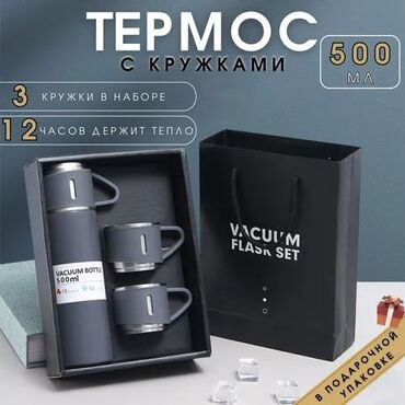 Идеальный объем 500 мл и небольшой размер позволяют удобно носить термос с собой в сумке. Дополнительно в комплекте идут две кружки из нержавеющей стали.