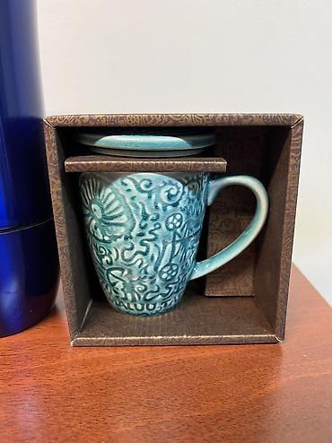 - Керамическая кружка с крышкой-блюдцем
