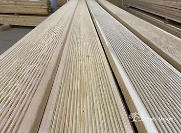 Террасная доска из хвойных пород (сосна/лиственница), профилированная. Характеристики: - Профиль: двусторонний/односторонний рифлёный (антискользящая поверхность с частыми продольными канавками). ...