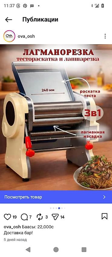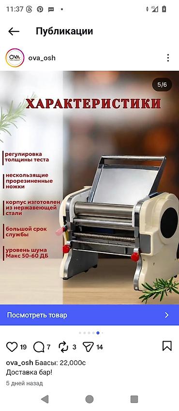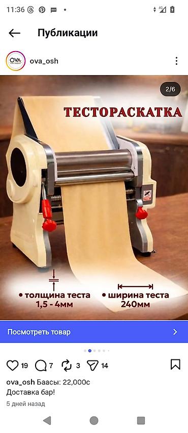 Электрическая машина тесто для манты, и лагман пельмен т.д - Ширина пласта: 24 см - Мотор качественный новый!!!! Срочно продаётся!!!!! Есть и старый пользовались месяц 20000 сом