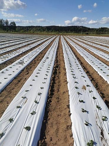 - двухсторонняя плёнка: белая сторона вверх — отражает солнце и снижает перегрев растений; чёрная — препятствует росту сорняков;