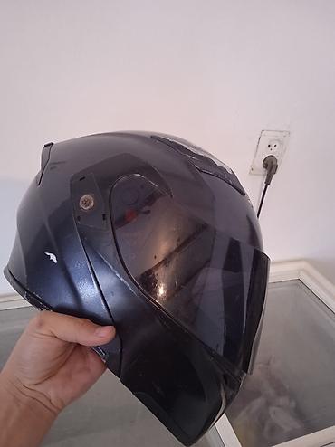 В комплекте: закрытый мото-шлем черного цвета с визором.