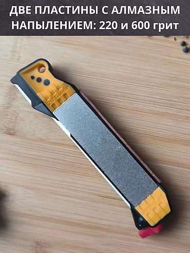 - Две сменные пластины с алмазным напылением: 220 и 600 грит — для быстрой правки и тонкой доводки.