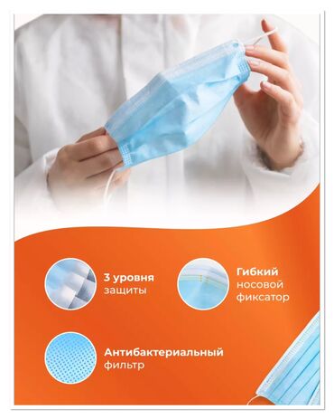 Маски одноразовые, трехслойные Цена 50 штук 90 сом ( оптом цена