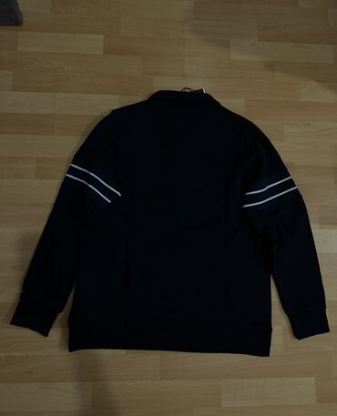 - Детали: воротник с контрастной кантовкой, эластичные манжеты и нижняя резинка, две контрастные двойные полосы на каждом рукаве
