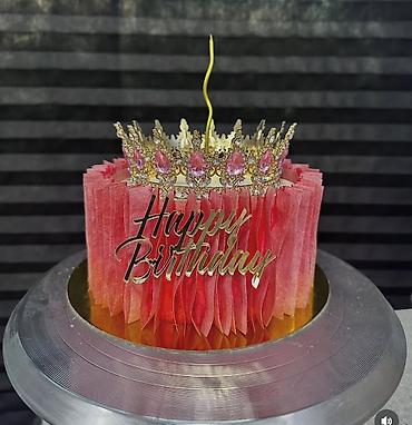 - Декор на выбор: корона с розовыми кристаллами, белые бутоны роз, золотые акценты, крошка/осколки из изомальта.