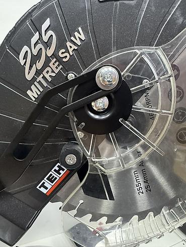 - Диск 255 мм с защитным кожухом, подходит для точных поперечных и угловых резов по дереву и композитам.