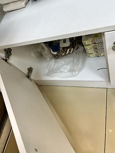 - Нижняя тумба с распашными дверцами на мебельных петлях, внутреннее пространство для запаса товара/упаковки.