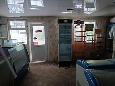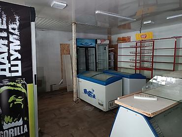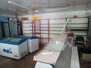 - Внутри готовая торговая зона с прилавком и системой стеллажей (настенные полки, металлические корзины).