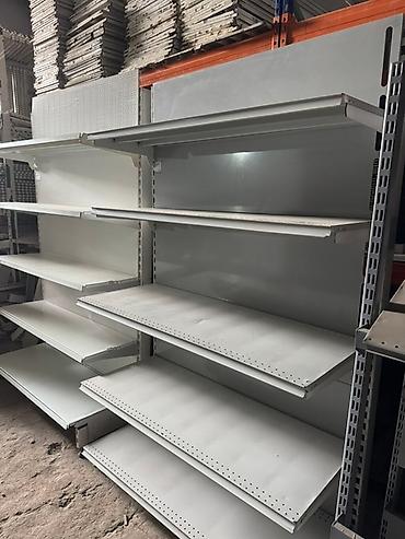- Полки: металлические, с передним бортиком/профилем под ценник; каждая сторона оснащена несколькими уровнями хранения. Верхние полки возможно устанавливать под углом.