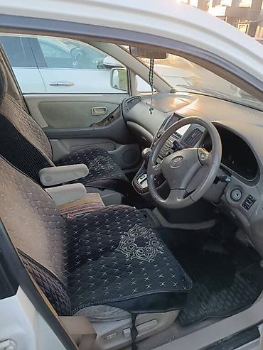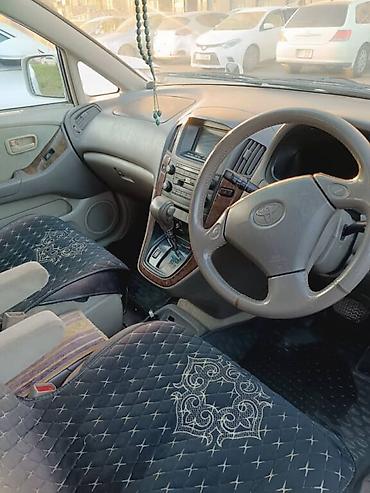 - Бензиновый двигатель 2.2 (типичный для данной модели; значок V6 на решетке не виден, но конфигурация и оформленные двойные подстаканники/приборный щиток соответствуют Harrier первого поколения).