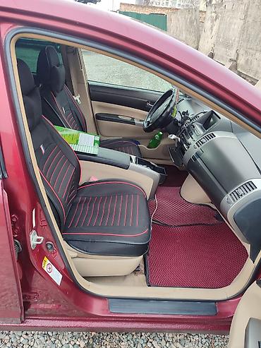 - Салон бежевого цвета с черными накидками/чехлами на сиденьях