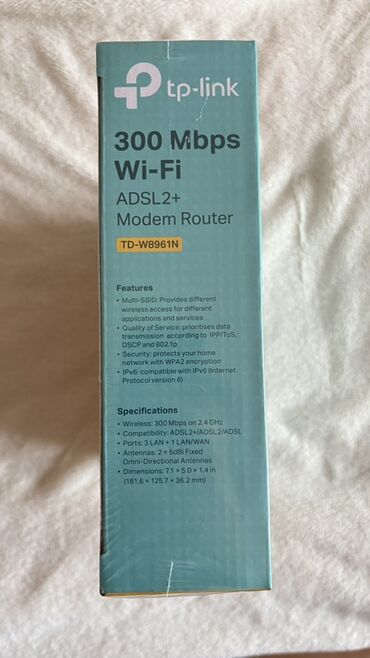 TP-Link TD-W8961N — беспроводной ADSL2+ модем‑роутер с Wi‑Fi до 300 Мбит/с на частоте 2.4 ГГц.