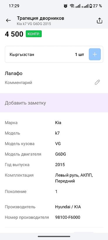Трапеция дворников Kia, Оригинал