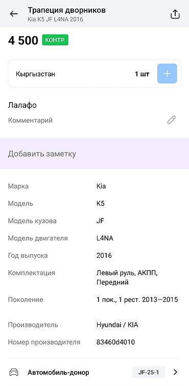Механизм привода дворников (трапеция) с электромотором. Узел включает рычаги, тяги и моторедуктор с штатными посадочными местами и разъёмом. Обеспечивает синхронную работу щёток, корректную парковку и стабильную скорость хода. Подходит для штатной замены без доработок по креплениям и электрическому подключению на указанных модификациях K5 JF.