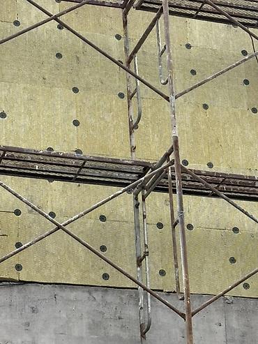 - Монтаж теплоизоляции из каменной (базальтовой) ваты плитами, механическое крепление тарельчатыми дюбелями.