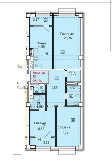 3 комнаты, 104 м², 13 этаж, Готовая ПСО (под самоотделку)