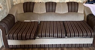 Трёхместный диван с подушками-сиденьями в полоску. Б/у раскладной