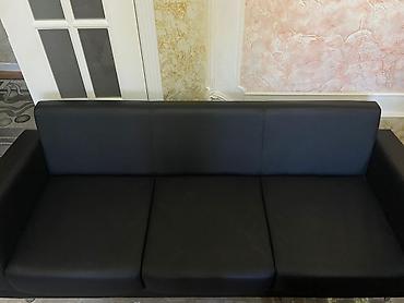 Стильный трехместный диван в современном минималистичном дизайне. - Обивка: гладкая эко‑кожа/кожзам глубокого черного цвета, легко очищается, устойчива к износу. - Посадка: глубокая и удобная; объ...