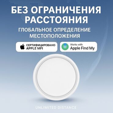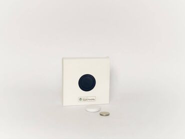 Компактный трекер в форме круга белого цвета. Разработан для отслеживания местоположения различных предметов, таких как ключи, кошельки или багаж. Устройство легко крепится к нужным вещам и помогает их найти через приложение на смартфоне. Поддерживает глобальное определение местоположения и совместим с технологией Apple Find My.