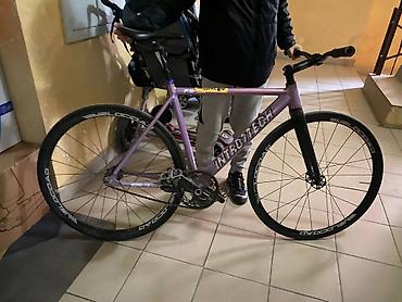 Трековый/фиксед велосипед - Рама: алюминиевая, фиолетовая окраска, геометрия трек/фикс, жёсткая карбоновая (или алюминиевая) вилка под тормозное отверстие. - Рулевой комплект: стандарт 1 1/8". - В...