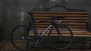 - Рама и вилка: жесткая аэрогеометрия, внутренняя прокладка троса переднего тормоза, горизонтальные дропауты под трековую ось, крепление под передний калипер.