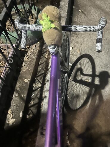 - Дополнительно: рогатый шоссейный руль, аккуратная внутренняя проводка отсутствует (как у трековых), на руле мягкая игрушка-талисман (съёмная).
