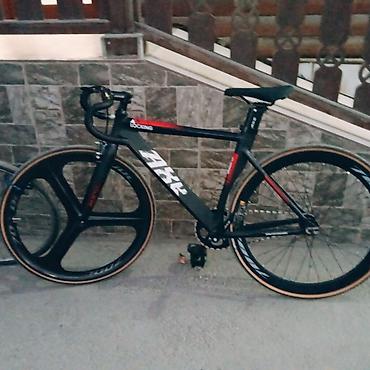 - Колеса: 700C; переднее колесо – карбоновый/композитный трехспицевый диск, заднее – классическое спицованное; покрышки с шоссейным гладким протектором