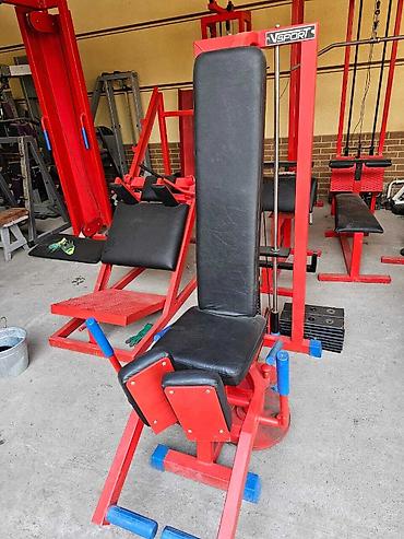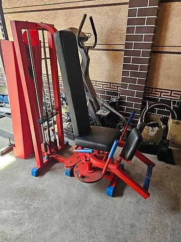 Силовой тренажер для тренировки мышц ног. Предназначен для выполнения упражнений на разгибание и сгибание ног в положении сидя. Оснащен регулируемой спинкой и мягкими валиками для комфортной фиксации ног. Прочная рама красного цвета с синими акцентами обеспечивает устойчивость и надежность тренажера. Подходит для использования в спортивных залах и домашних условиях.