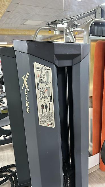 Тренажер для мышц торса X-Line XR.117. Этот тренажер предназначен для выполнения упражнений на скручивание, направленных на развитие косых мышц живота и мышц кора. Оснащен регулируемым сиденьем и валиками для фиксации, что позволяет настроить его под индивидуальные параметры пользователя. Имеет встроенный весовой стек для изменения нагрузки.