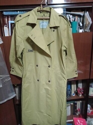 Плащ-тренч женский, оливково-зелёный. - Двубортная застёжка на