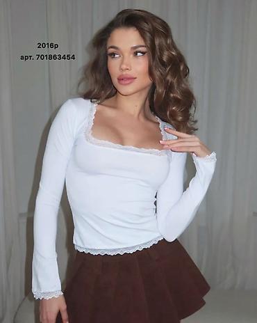 - Базовые белые лонгсливы с длинным рукавом и женственным кружевным декором.