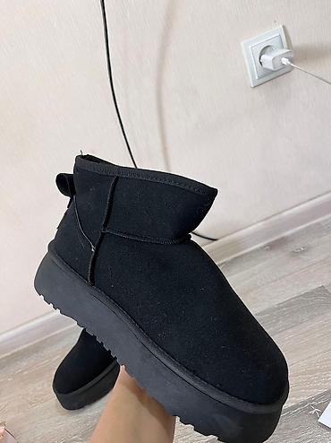 Угги женские, черные, с меховой отделкой. В хорошем состоянии, подошва абсолютно целая не стоптанная. Размер 37. Цена 1400сом - Материал верха: замша/нубук черного цвета - Внутренняя отделка: пуши...