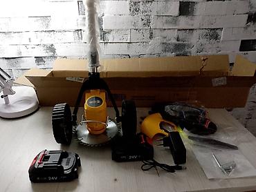 Триммер 5000сом газонокосилка электрическая новая из России на колесах 2 аккумулятора в комплекте колеса съёмные для несложных задач подровнять после скоса доставка по городу Бишкек имеется газон...