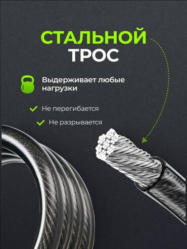 Сверхпрочный стальной трос с ПВХ-оплёткой не путается, не рвётся и идеально держит скорость. Благодаря регулируемой длине, ты подстраиваешь её под себя — от новичка до профессионала.