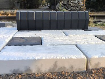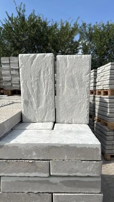 - Материал: вибропрессованный/вибролитой бетон (видны паллеты со штучными элементами).