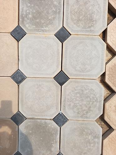 - Формат: модульная система из крупных восьмиугольных плит и контрастных квадратных вставок (ромбов) для швов.