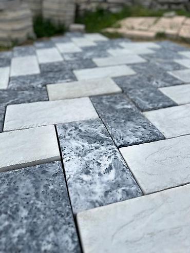 - Комплект из нескольких типоразмеров для модульной укладки: прямоугольники и квадраты, позволяющие создавать динамичные узоры без подрезки.