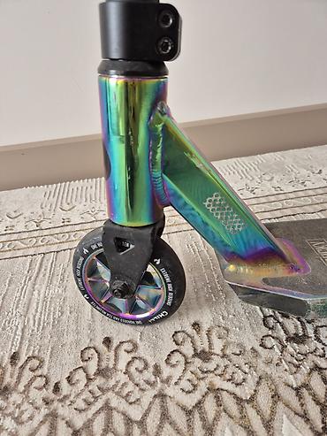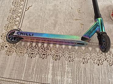 Покупали в Алмате в фирменном магазине. Трюковой самокат Chili (Chilli) с неохромным покрытием.