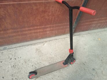 Трюковый самокат с прочной конструкцией, разработанный для выполнения различных трюков и прыжков. Представлен в нескольких цветовых вариантах, включая черный с золотистыми, голубыми, оранжевыми и з...