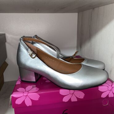 Продаю женские туфли на каблуке, серебристого цвета, с блестками. Размер - 39. Цена - 1000с.