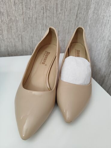 Туфли-лодочки BINGDIE - Материал верха: светло-бежевый замшевый текстиль - Носок: острый - Декор: крупные квадратные пряжки со стразами/пайетками в сером цвете - Внутренняя отделка: гладкая бежева...
