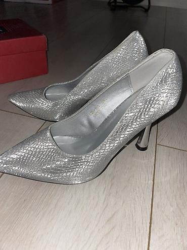 Туфли-лодочки на каблуке. - Модели: серебристые с фактурой «под