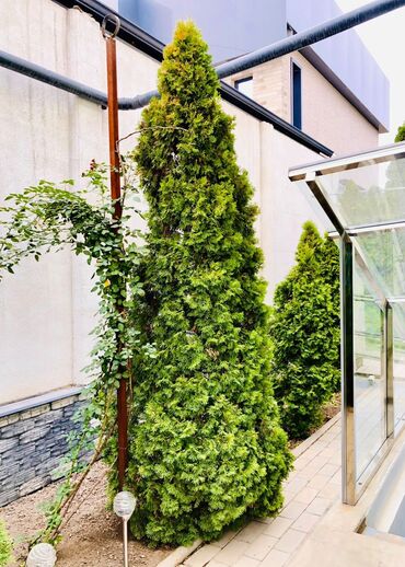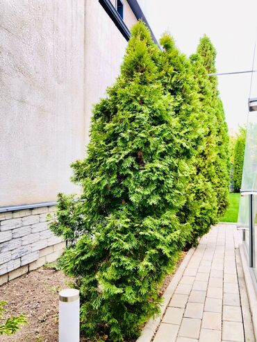 Туи западные (скорее всего сорт Смарагд) для живой изгороди